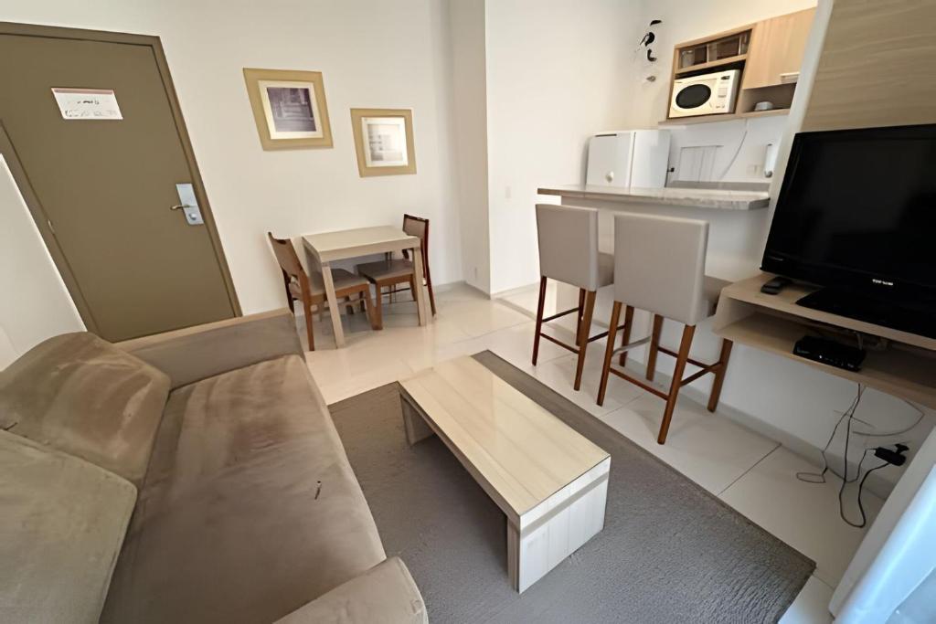 Comporta até 2 pessoas e conta com sala, terraço, cozinha/área de serviço, banheiro, home office e dormitório
