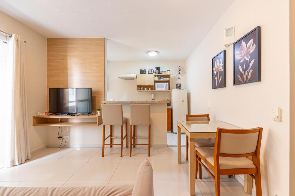 Comporta até 4 pessoas e conta com sala, terraço, cozinha/área de serviço, banheiro social, home office e dormitórios.